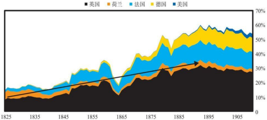 步入帝国主义阶段后★ღ◈,英国的资本输出经历了显著扩张★ღ◈,以铁路投资为代表★ღ◈。伴随工业资本过剩★ღ◈,英国由商品输出转向资本输出★ღ◈,构成帝国主义经济的核心特征之一★ღ◈。1850-1870年★ღ◈,英国的资本输出从2亿英镑激增至14亿英镑★ღ◈,主要针对殖民地和半殖民地国家★ღ◈。一方面★ღ◈,殖民地及半殖民地拥有廉价劳动力和资源禀赋★ღ◈,英国向其大规模投资铁路等基础设施能够获取高额的投资回报★ღ◈,同时带动铁轨★ღ◈、机车等资本品出口★ღ◈。另一方面★ღ◈,伦敦金融城为殖民地铁路建设提供国际贷款★ღ◈,英镑的流动性随之增强★ღ◈。在此阶段★ღ◈,英国占全球出口份额已在逐步下降★ღ◈,但持续的海外投资回报仍使得经常账户保持盈余★ღ◈。