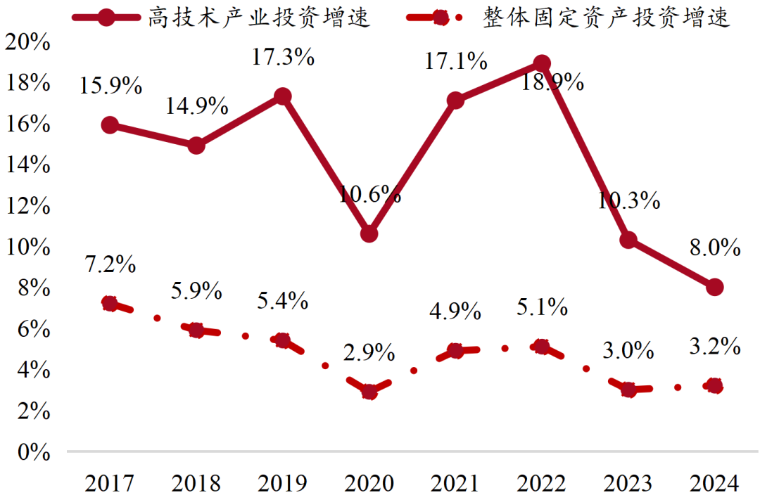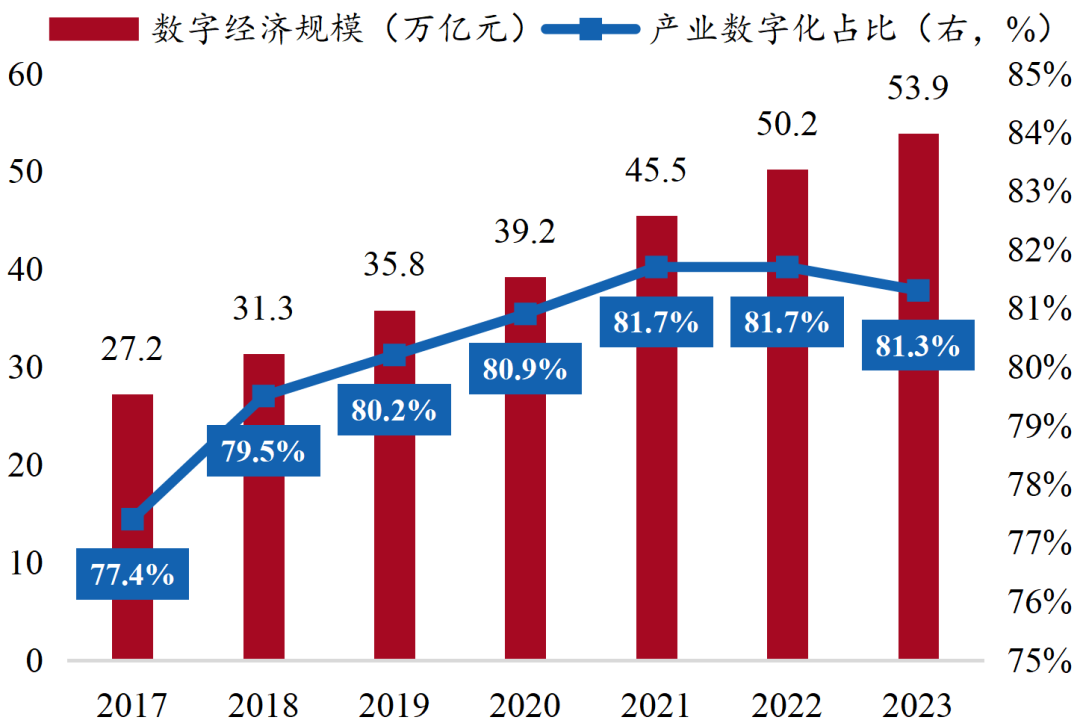 我国积极推动产业向“四化”升级★ღ◈。美国引领的信息技术革命成为上一轮康波周期的主导产业★ღ◈,我国通过加入WTO把握住了全球互联网革命的机遇★ღ◈,在数字通信技术和通用设备的硬件制造领域形成全球优势★ღ◈。2015年以来★ღ◈,全球康波周期步入萧条阶段★ღ◈,以科技革命驱动康波周期回升成为大国博弈的重点★ღ◈。在现代化产业体系建设的大框架下★ღ◈,我国持续推动产业向数字化★ღ◈、绿色化★ღ◈、高端化★ღ◈、融合化转型升级★ღ◈,逐渐构筑起产业护城河★ღ◈。绿色化是以“双碳”目标为指引★ღ◈,在我国新型能源体系相对全球其他国家已具备明显优势的基础上★ღ◈,进一步推动全产业绿色化升级★ღ◈。智能化是通过数字产业化和产业数字化推动数字技术和实体经济深度融合★ღ◈。高端化旨在提升产品附加值★ღ◈,重在补短板★ღ◈,加速自主可控进程★ღ◈,同时着眼于商业航天★ღ◈、低空经济等新兴产业★ღ◈。融合化能够促进产业各部门间融合发展★ღ◈,推动现代服务业同先进制造业★ღ◈、现代农业深度融合★ღ◈。
