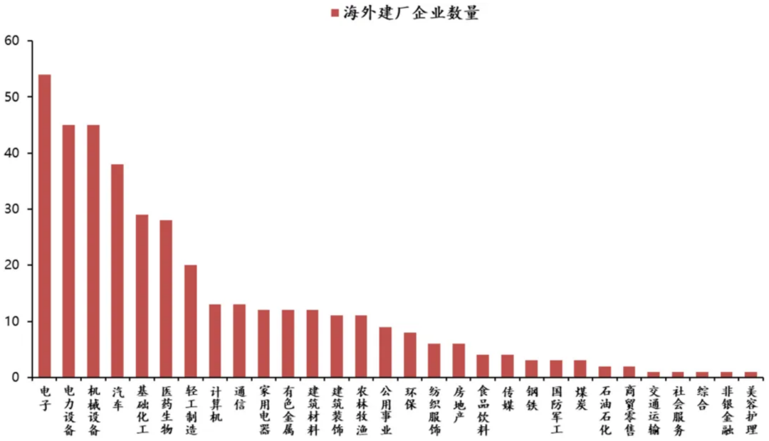 从中国制造到中国品牌★ღ◈,产能出海大势所趋★ღ◈。过去★ღ◈,中国通过低价代工模式输出“中国制造”★ღ◈,跟随核心企业嵌入全球产业链★ღ◈。随着中国品牌崛起★ღ◈,“中国智造”的产品竞争力得到验证★ღ◈,以主动开拓全球市场为核心目的的产能出海成为对外投资的重要方式★ღ◈,对外投资步入高质量的跨越式新阶段★ღ◈。近两年★ღ◈,贸易摩擦因素加剧了这一趋势★ღ◈,全球产业链格局呈现出“中国+N”的多工厂模式★ღ◈,我国绿地投资金额实现强劲增长★ღ◈。从上市公司的海外建厂数量看★ღ◈,电子★ღ◈、电力设备★ღ◈、机械设备★ღ◈、汽车★ღ◈、基础化工★ღ◈、医药生物等构成产能出海的主力行业★ღ◈。其中★ღ◈,凭借技术领先优势★ღ◈,新能源产业已显现出产业链协同出海的新趋势★ღ◈。